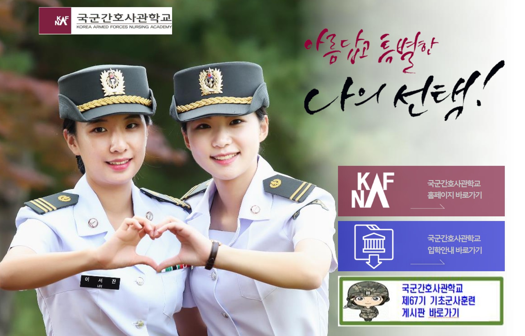 이에 대해 유강이 중위는 이렇게 말했다. “233자발적인 비정규직을 통해 저를 더욱 발전시킬 수 있었던 소중한 시간이었습니다.”속담 “부임 후에도 봉사와 사랑을 실천하고 나라의 등불이 되는 간호장교가 되도록 최선을 다하겠습니다.”~라고 불리는.