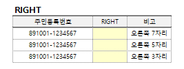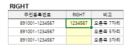 =오른쪽(셀 선택,가져올 문자 수(정수))