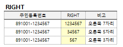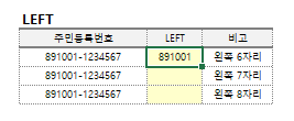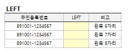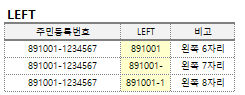위 이미지와 같이 주민등록번호 왼쪽 6자리를 가져오려고 합니다.